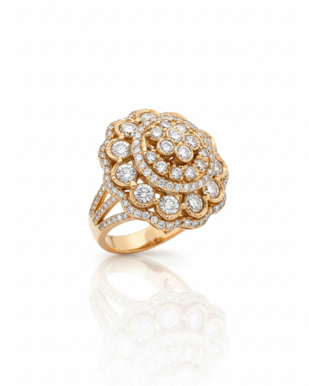 Large circular floral-inspired design with layered sparkling stones.