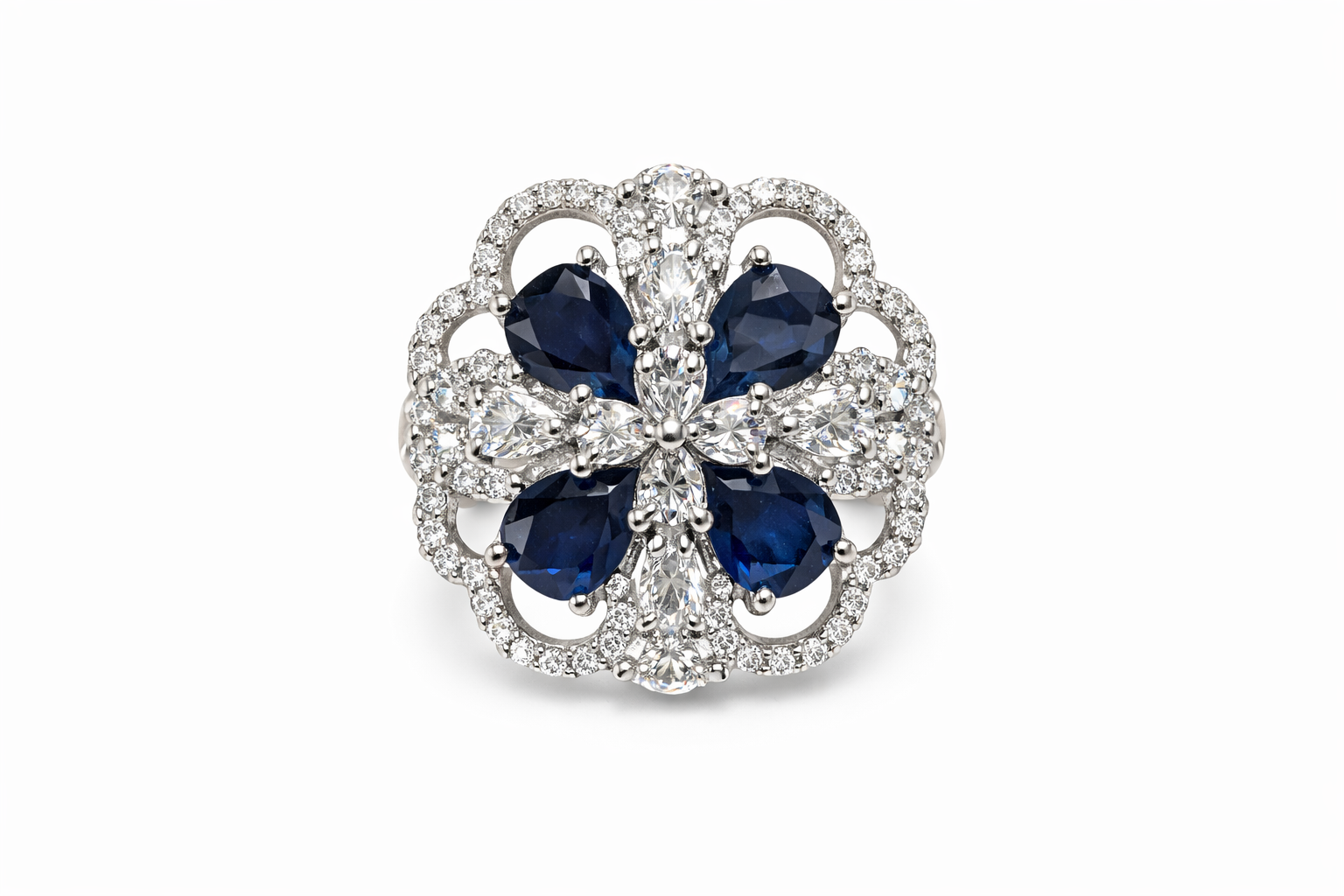 Sapphire Cross Bloom Ring