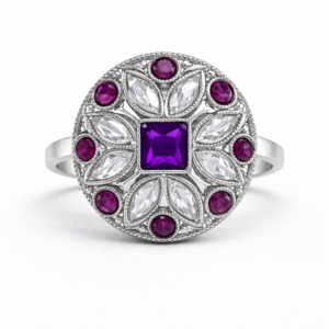 Amethyst Hexa Halo Ring